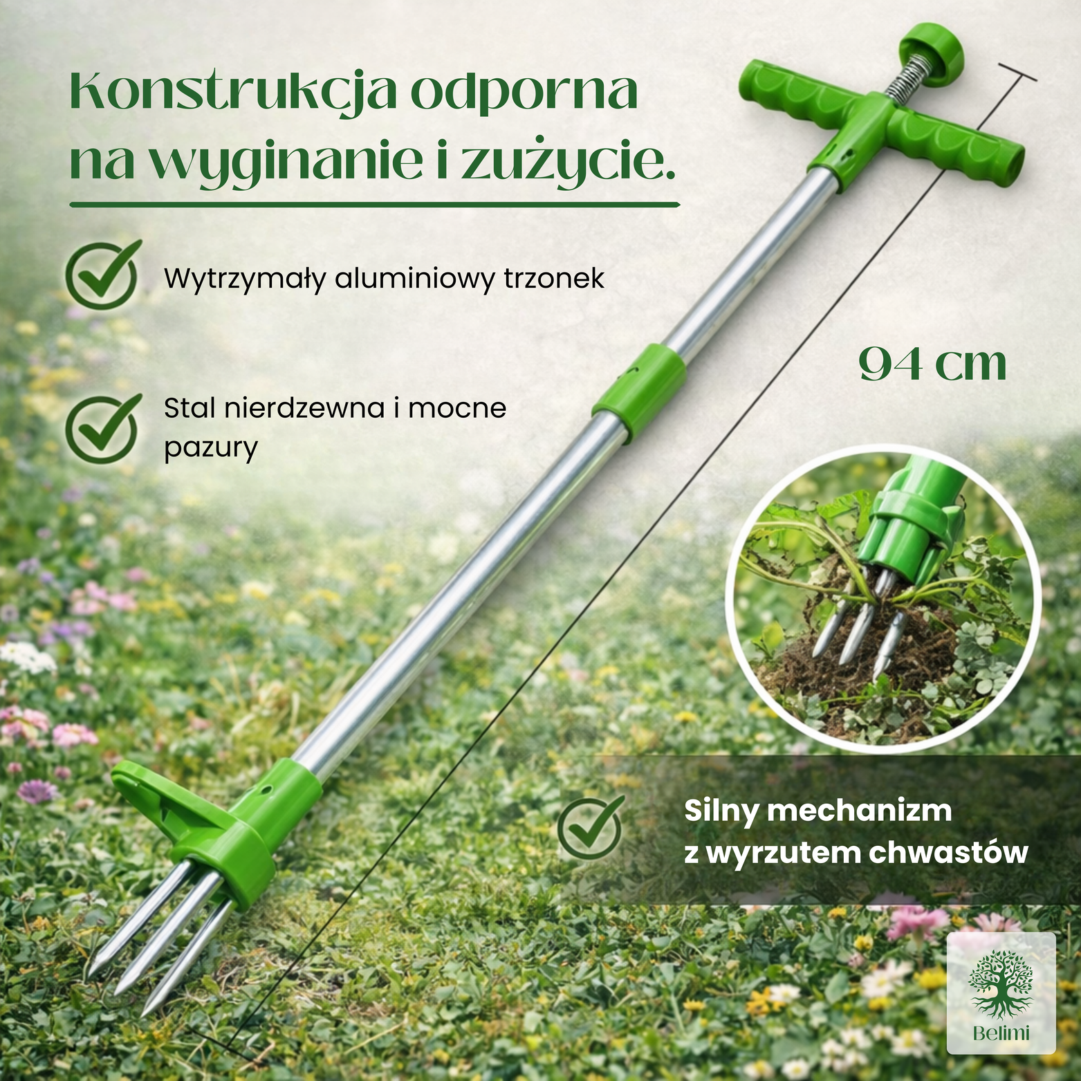 * Ergonomiczna konstrukcja umożliwia wygodne usuwanie chwastów bez schylania się.